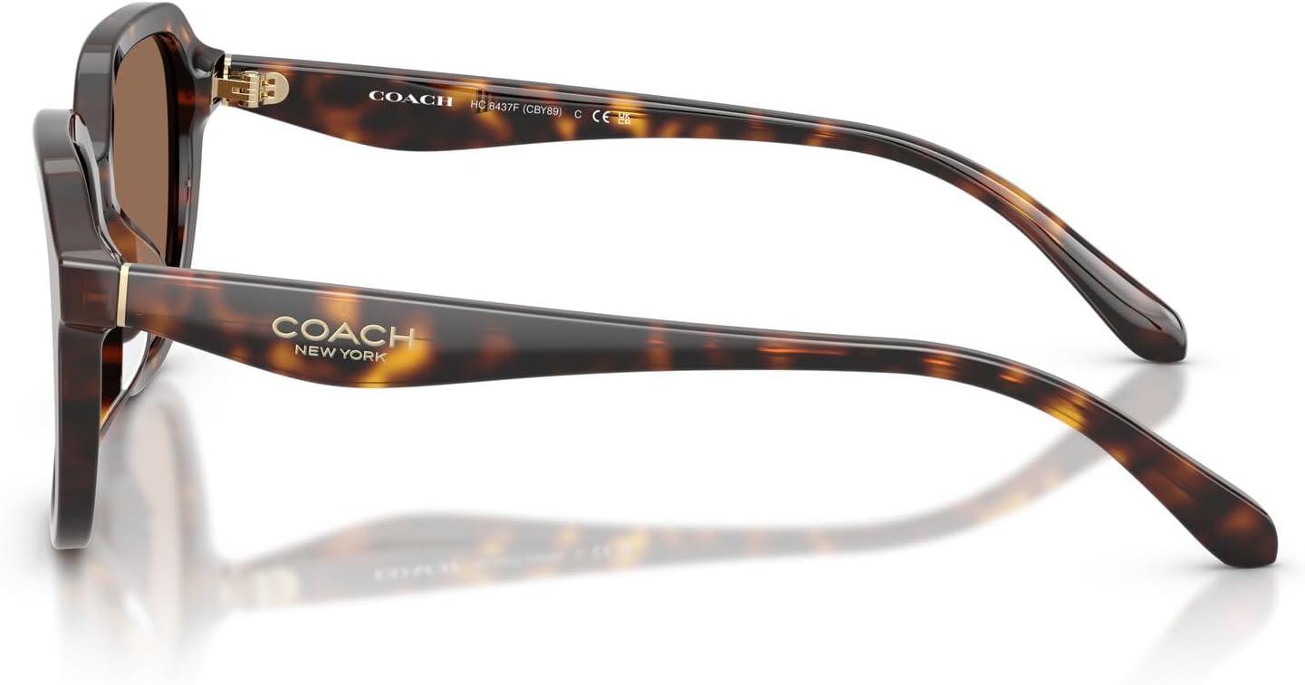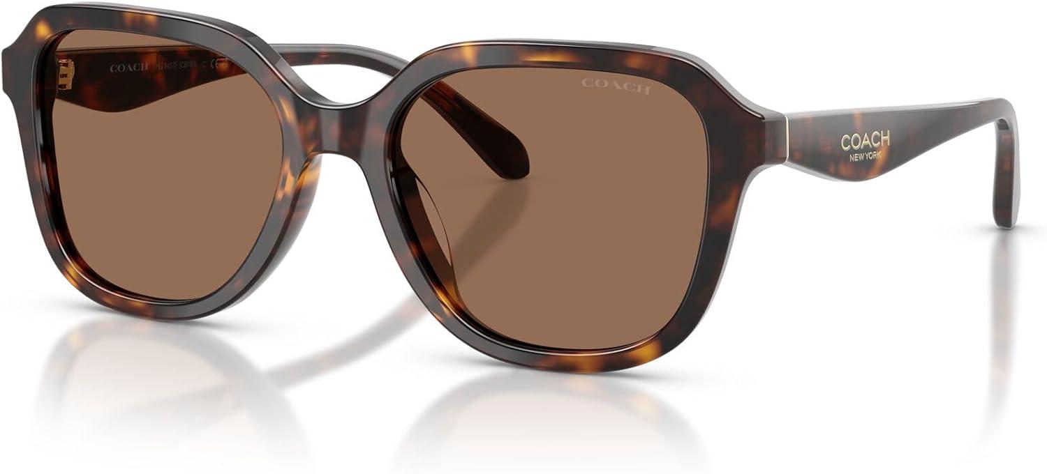 Coach Women’s Hc8437f Low Bridge Fit Square Sunglasses(Dark Tortoise/Brown Solid)