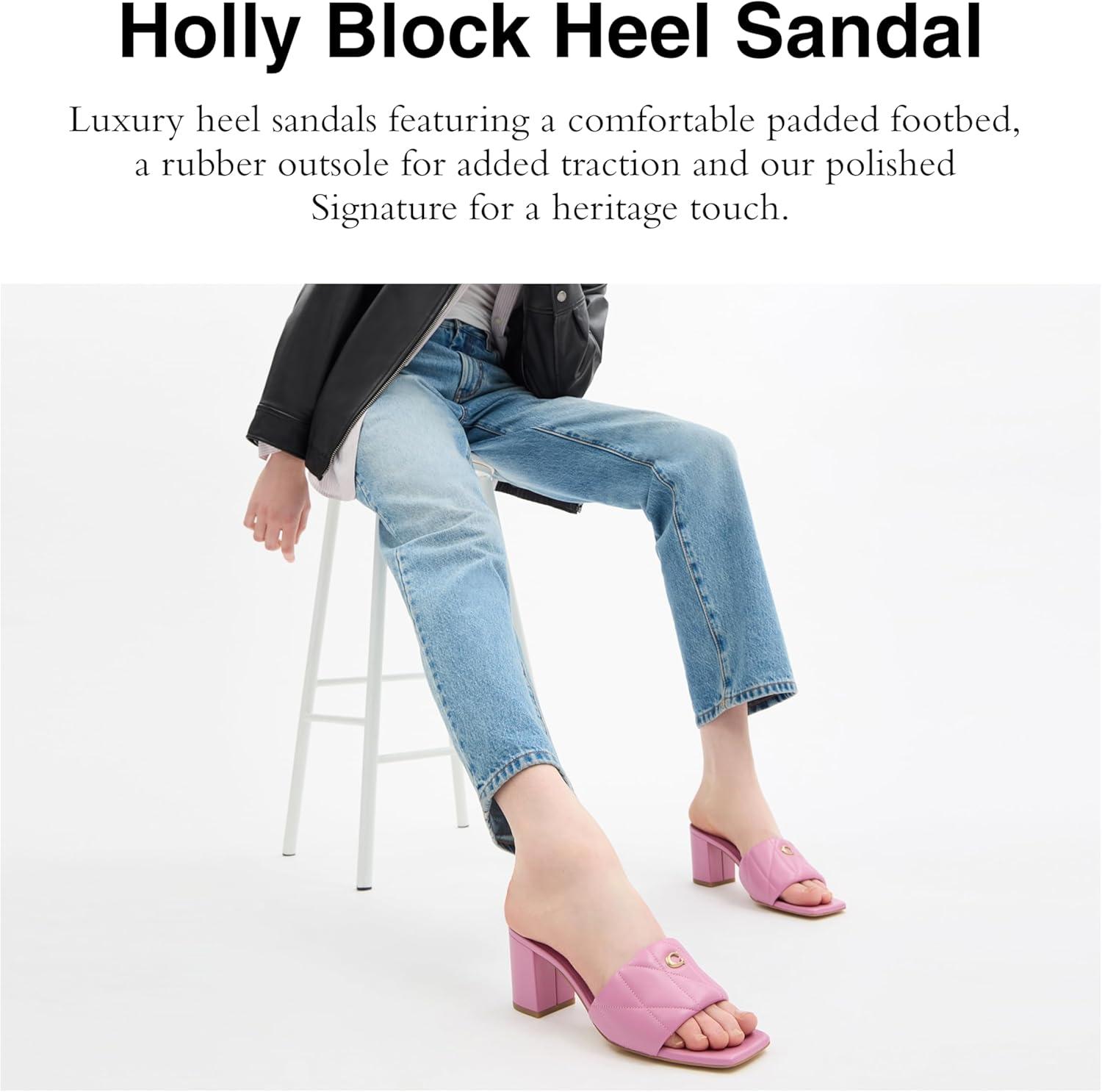 COACH womens Holly Block Heel Sandal(Black)