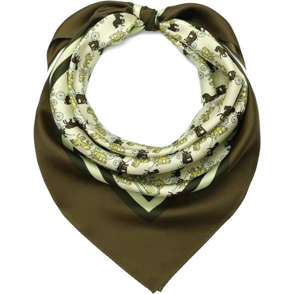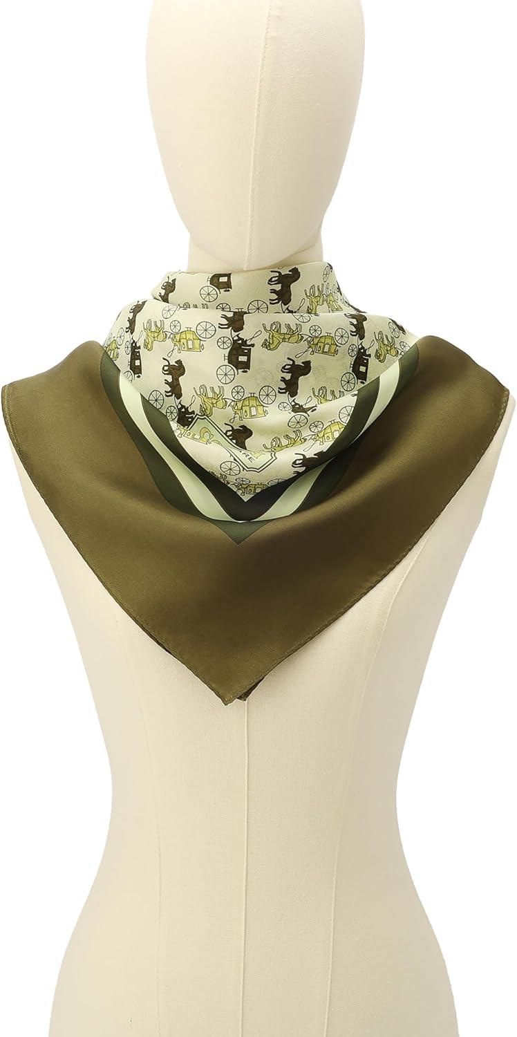 COACH womens Horse & Carriage Printed Silk Square(Olive)