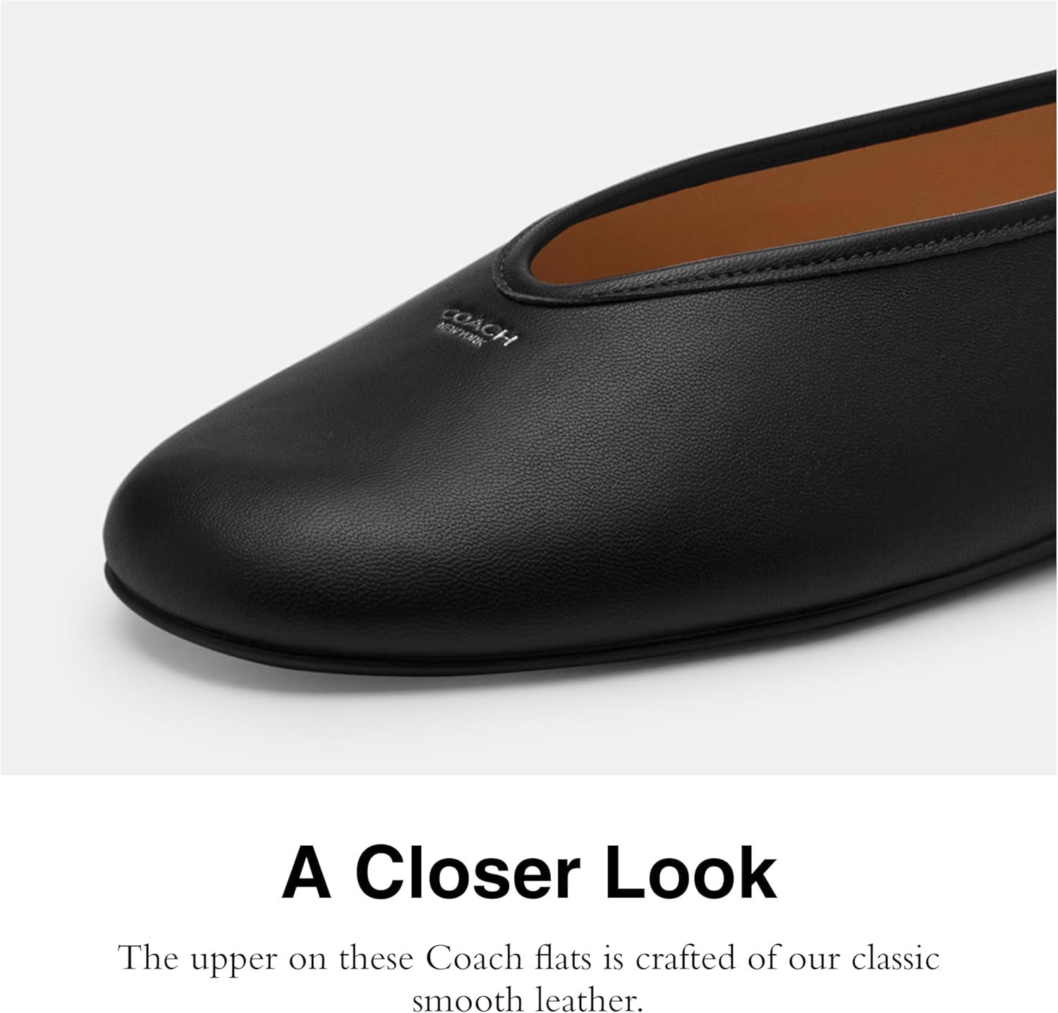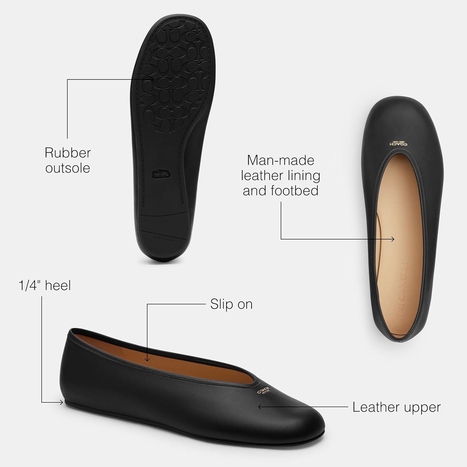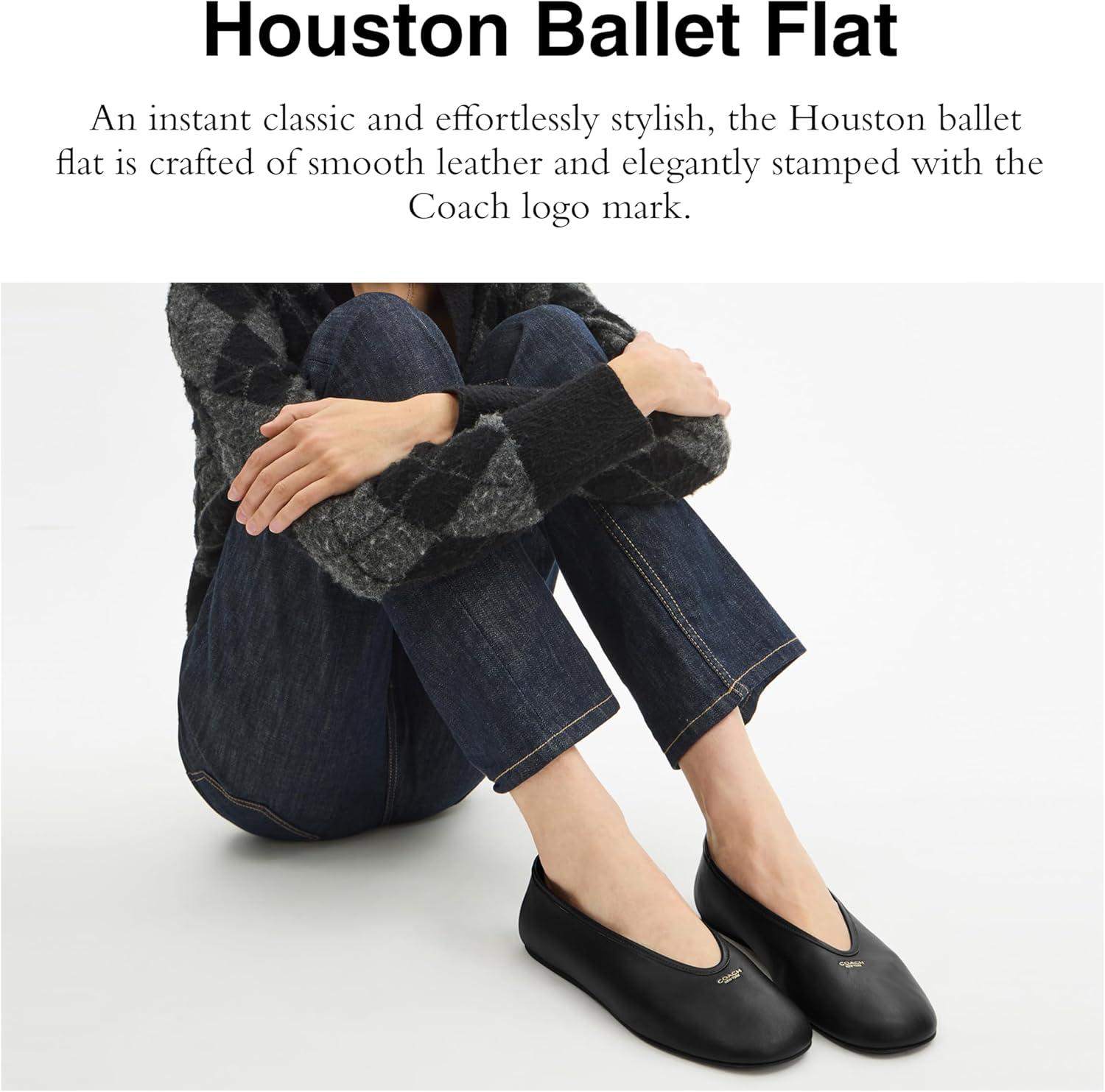 An instant classic and effortlessly stylish, the Houston ballet flat is crafted of smooth leather and elegantly stamped with the Coach logo mark. Leather upper, man-made leather lining and footbed, rubber outsole, slip on, 1/4″ heel