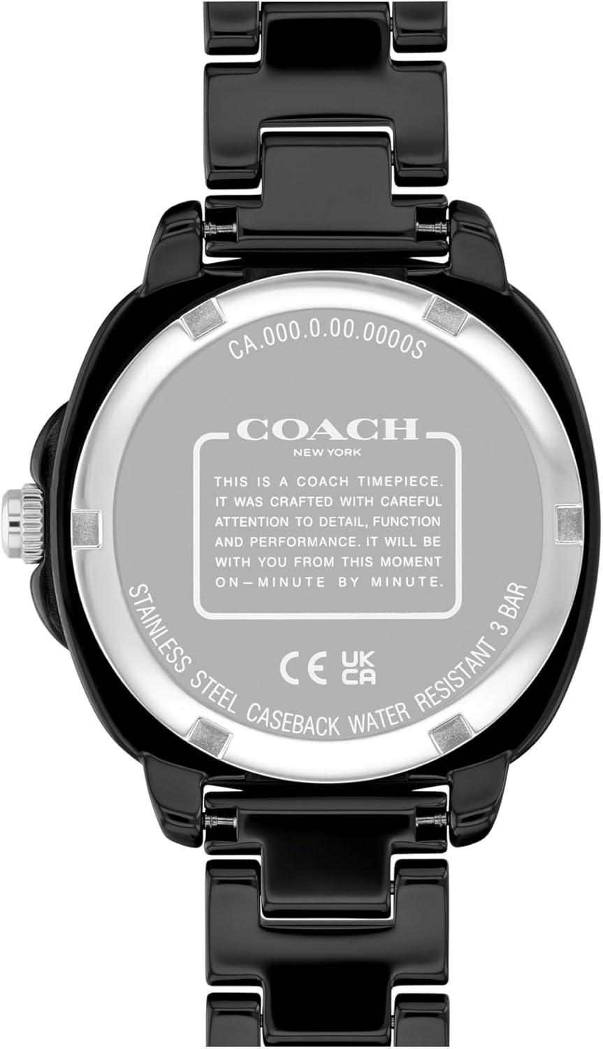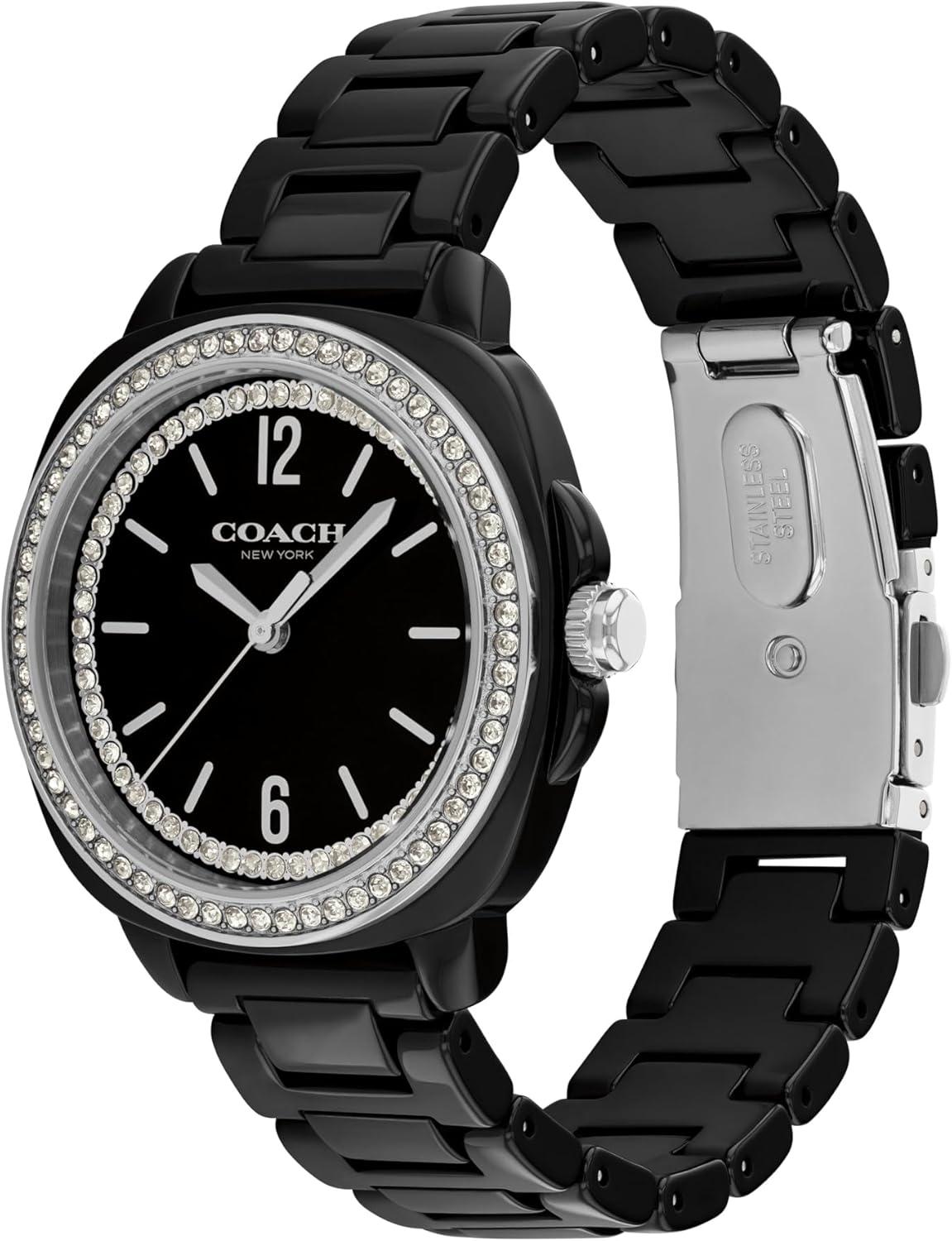 Coach Women's Kitt 3H Quartz Ceramic Watch, 34mm Case Size, Link Bracelet, Crystal Bezel, Iconic Cushion Shape, Modern Style - Gift for Her(Black)