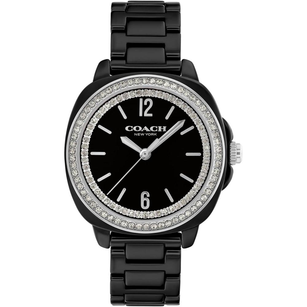 imageCoach Womens Kitt 3H Quartz Ceramic Watch 34mm Case Size Link Bracelet Crystal Bezel Iconic Cushion Shape Modern Style  Gift for HerBlack