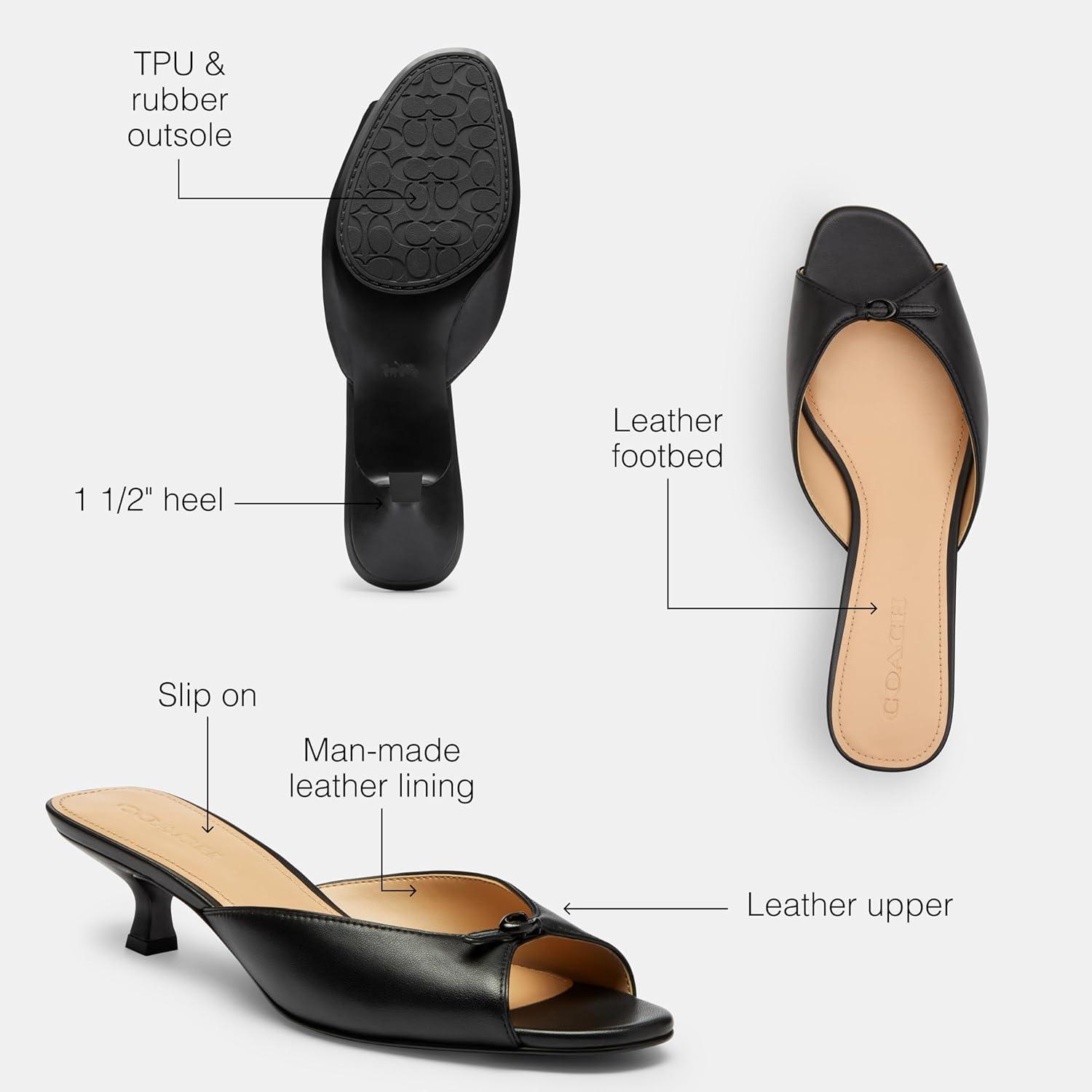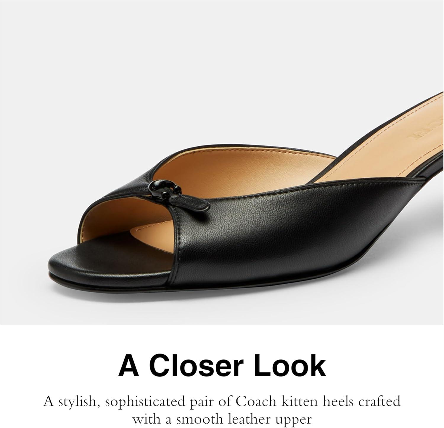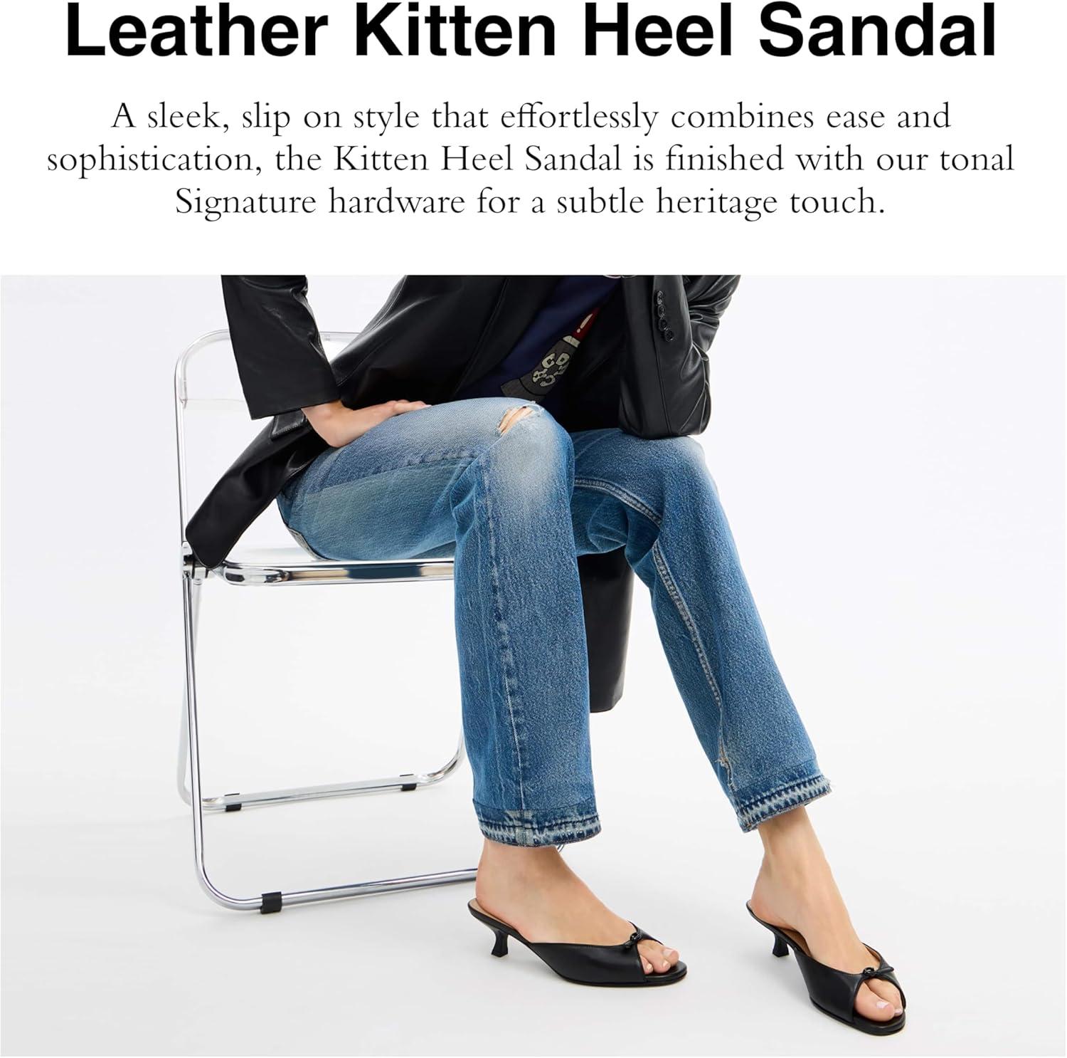A sleek, slip on style that effortlessly combines ease and sophistication, the Kitten Heel Sandal is finished with our tonal Signature hardware for a subtle heritage touch. Leather upper, man-made leather lining, leather footbed, TPU and rubber outsole, slip on, 1 1/2″ heel