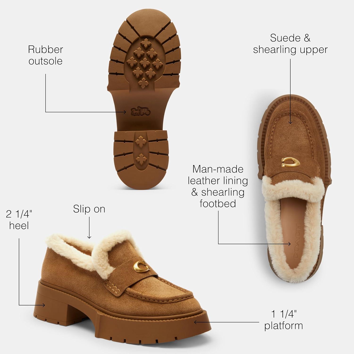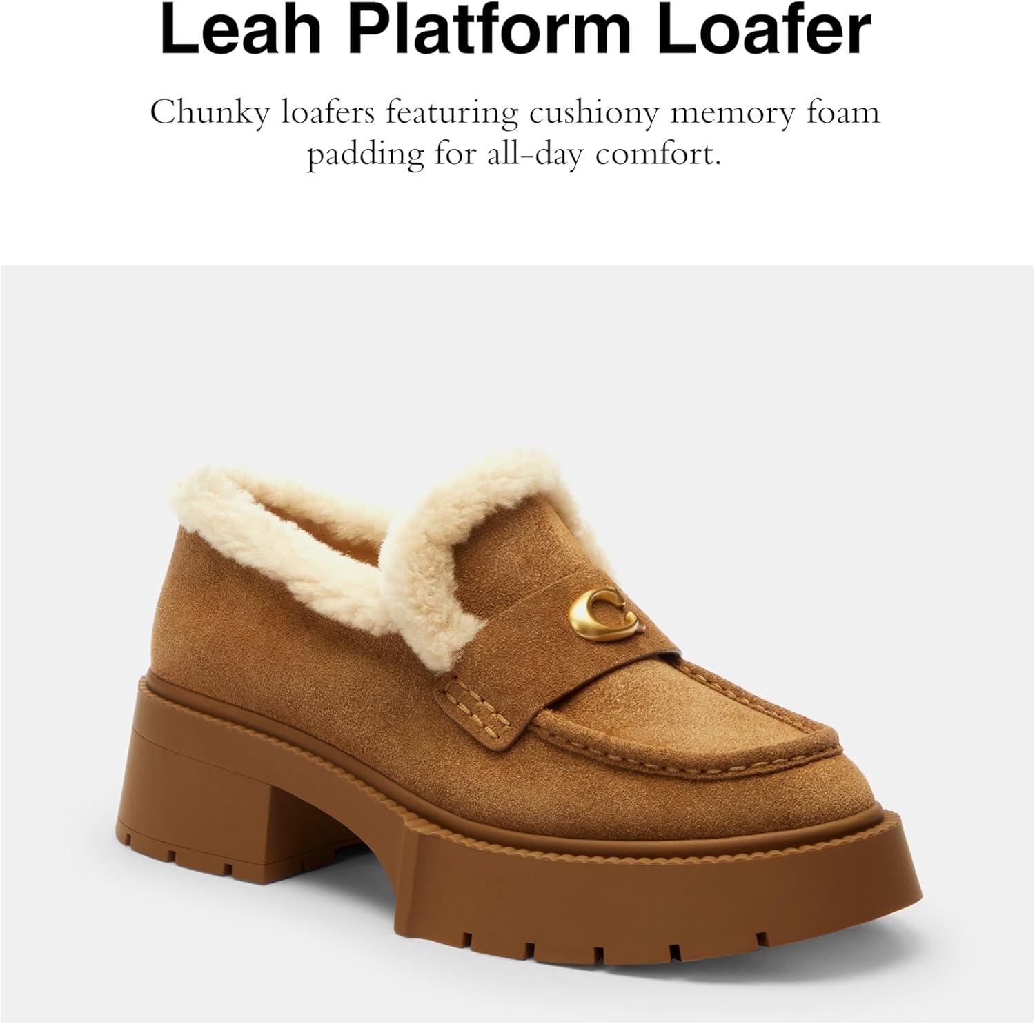 Our Leah loafer features a chunky ‘90s-inspired lug sole for subtle lift. Crafted of smooth leather, it features cushiony memory foam padding for all-day comfort and is finished with tonal Signature hardware for an iconic Coach look.