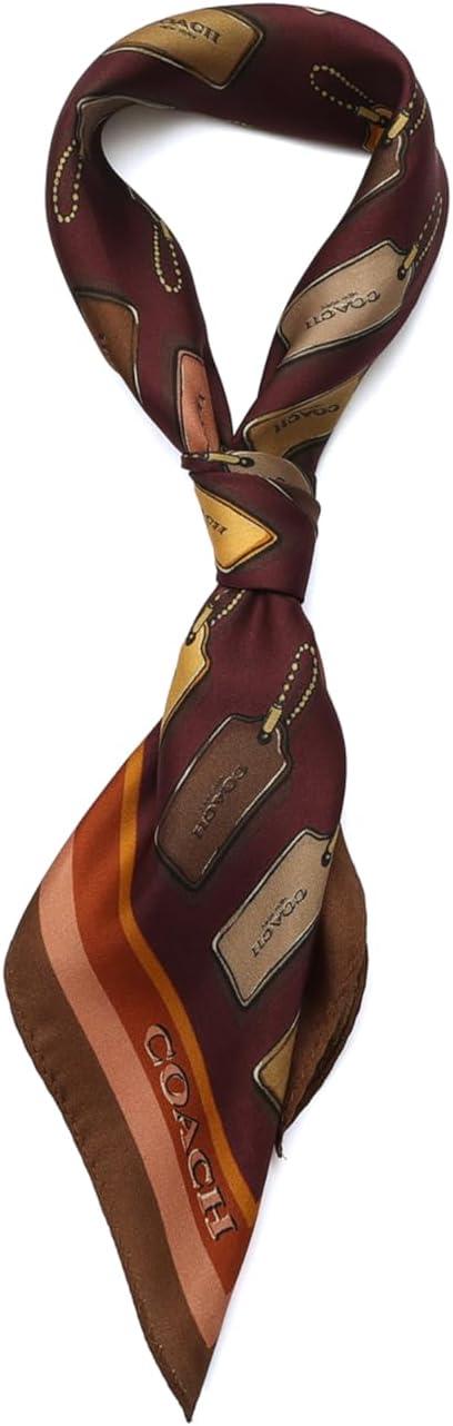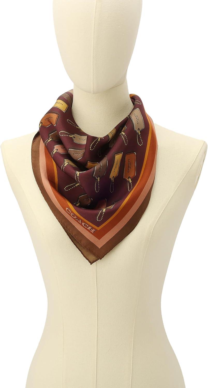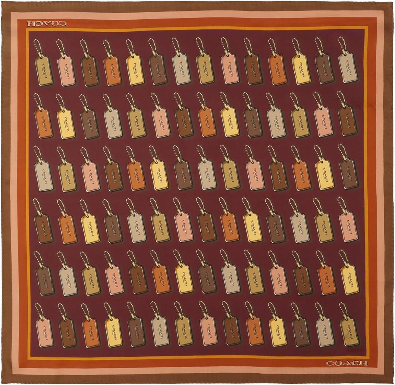 COACH womens Leather Hang Tag Printed Silk Bandana(Dark Whine/Multi)