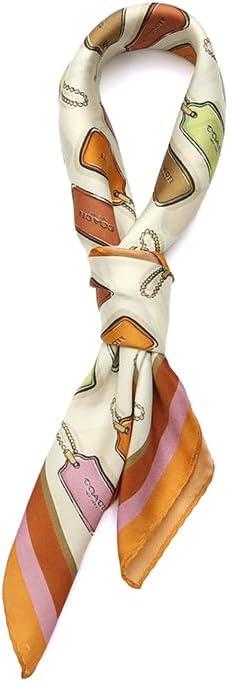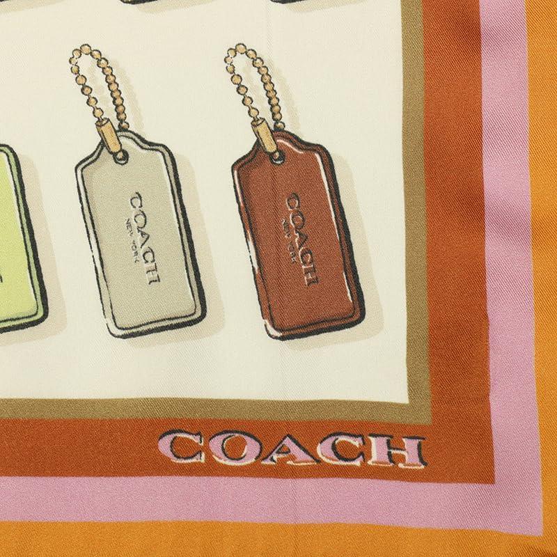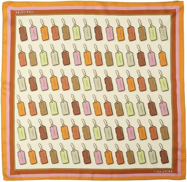 This lightweight silk square scarf is printed with images of our iconic Coach hang tag. The carf features the Coach Badge and is finished with a solid border.
