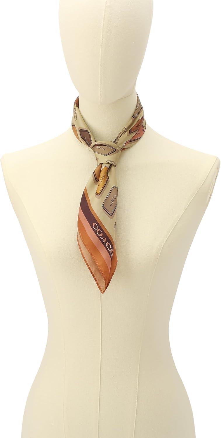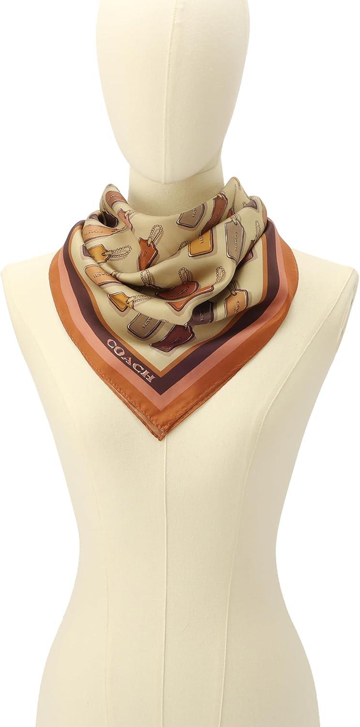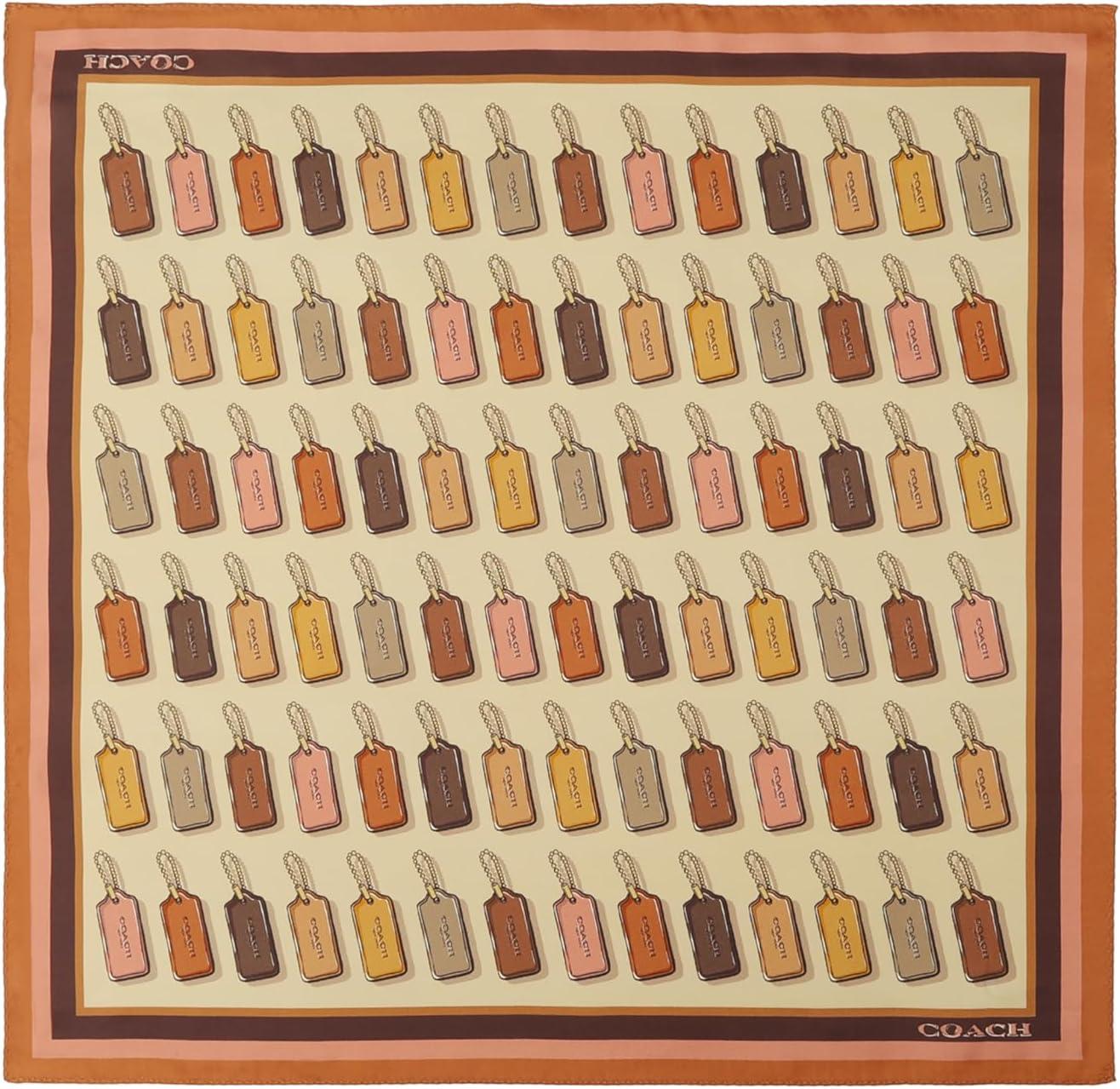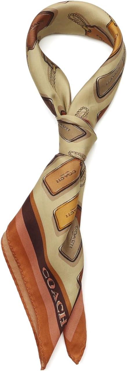 COACH womens Leather Hang Tag Printed Silk Bandana(Honey Brown/Multi)