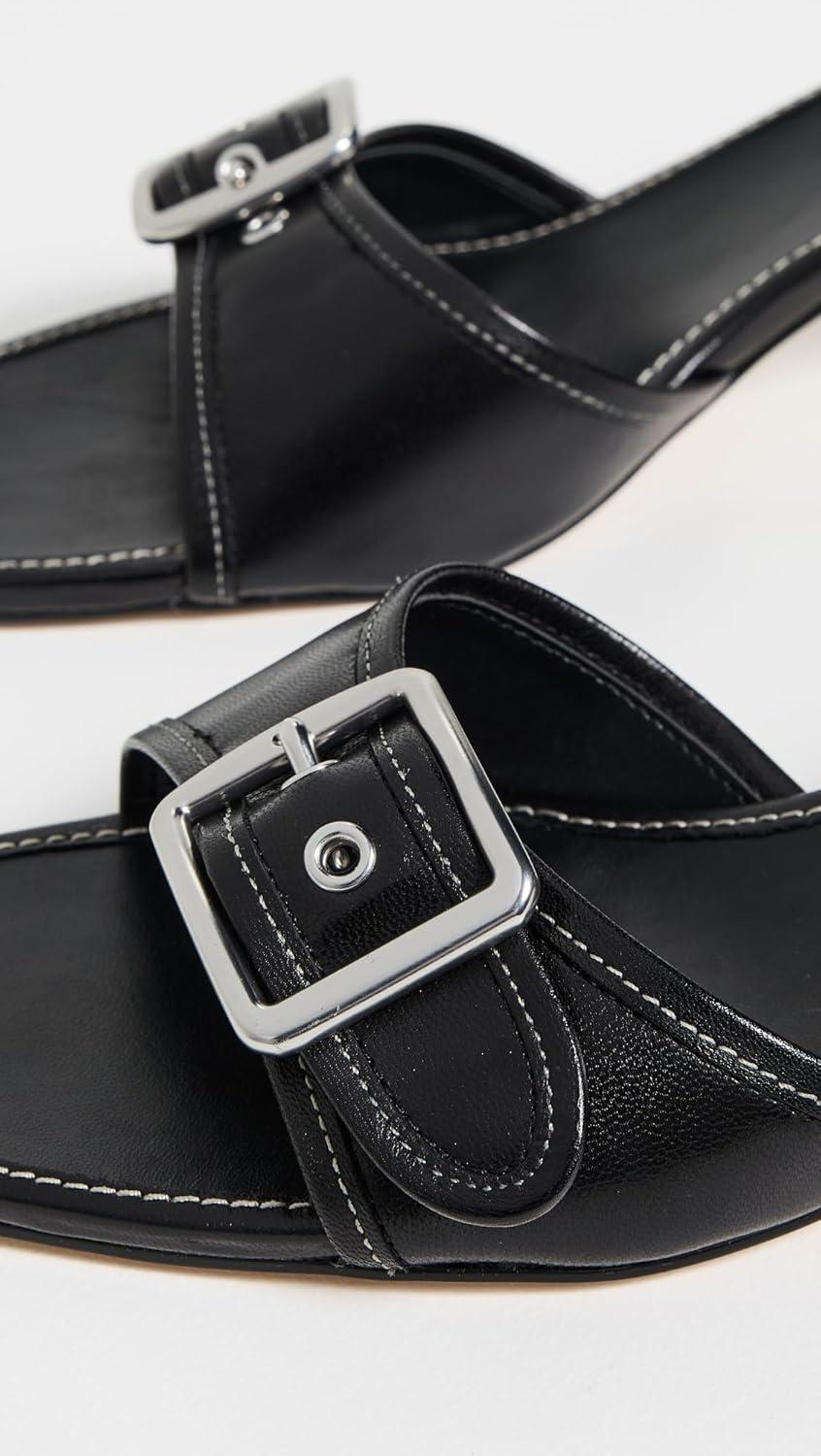 Perfect for work or weekend wear, the Margot sandals from Coach feature a smooth leather upper, buckle hardware, man-made leather lining, leather footbed, man-made leather outsole, and a 2 1/4″ kitten heel.