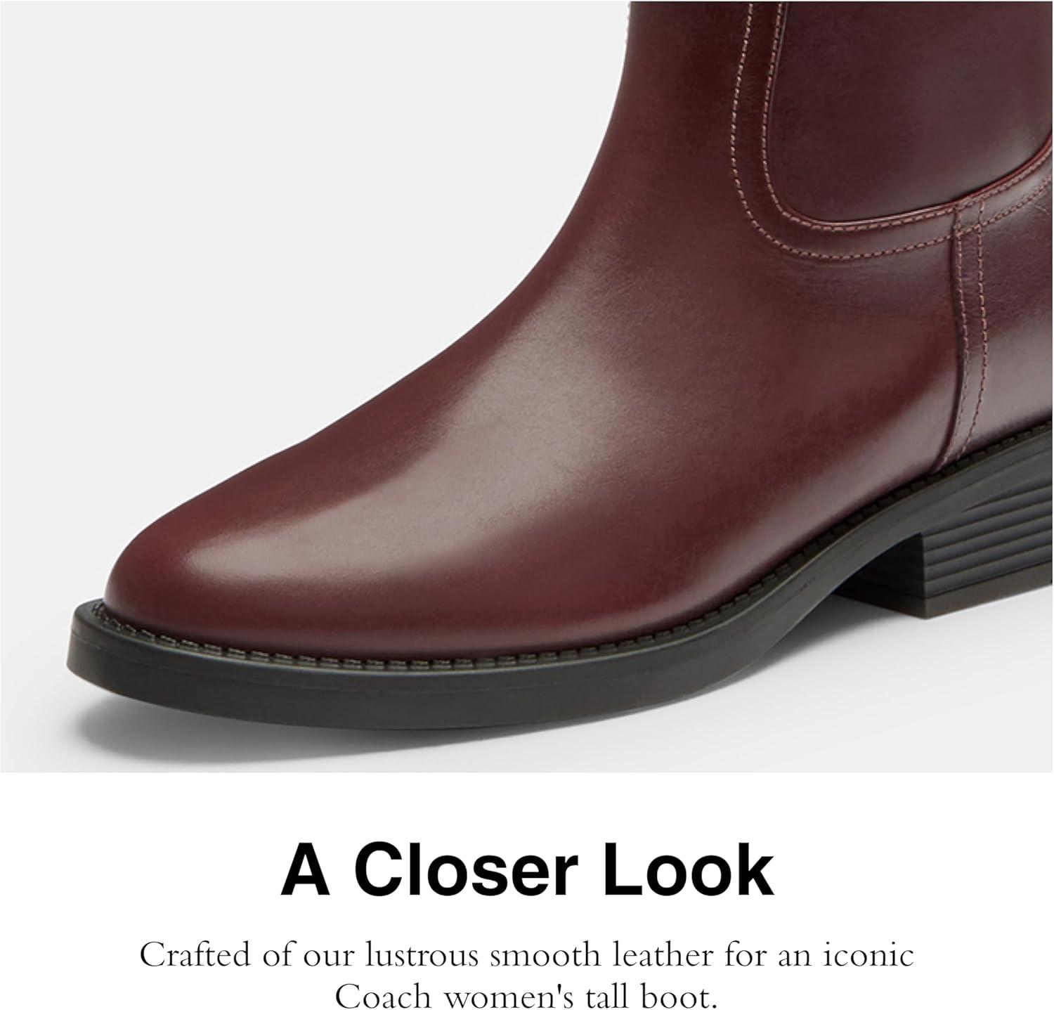The perfect everyday boot to dress up or down, our tall boot is crafted of smooth leather with contrast stitching and a walkable block heel. Crafted of our lustrous smooth leather for an iconic Coach women's tall boot
