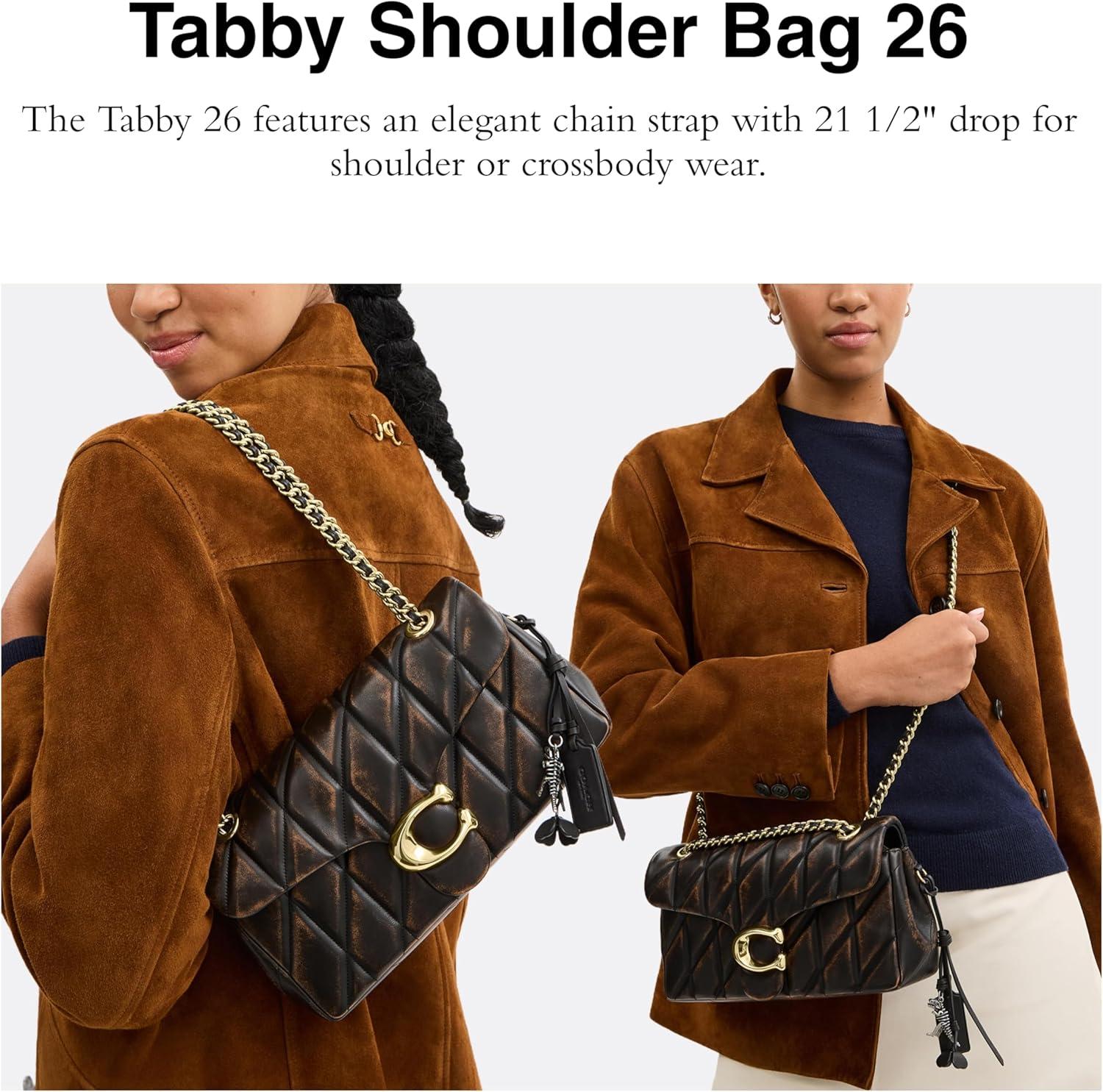 COACH Women’s Pebble Tabby Shoulder Bag | Quilted, 26, with Chain(Im/Black Brown)