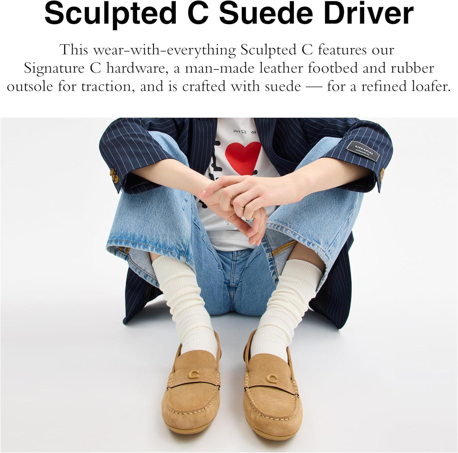 Coach Womens Sculpted C Driver in Signature Denim(Sand)
