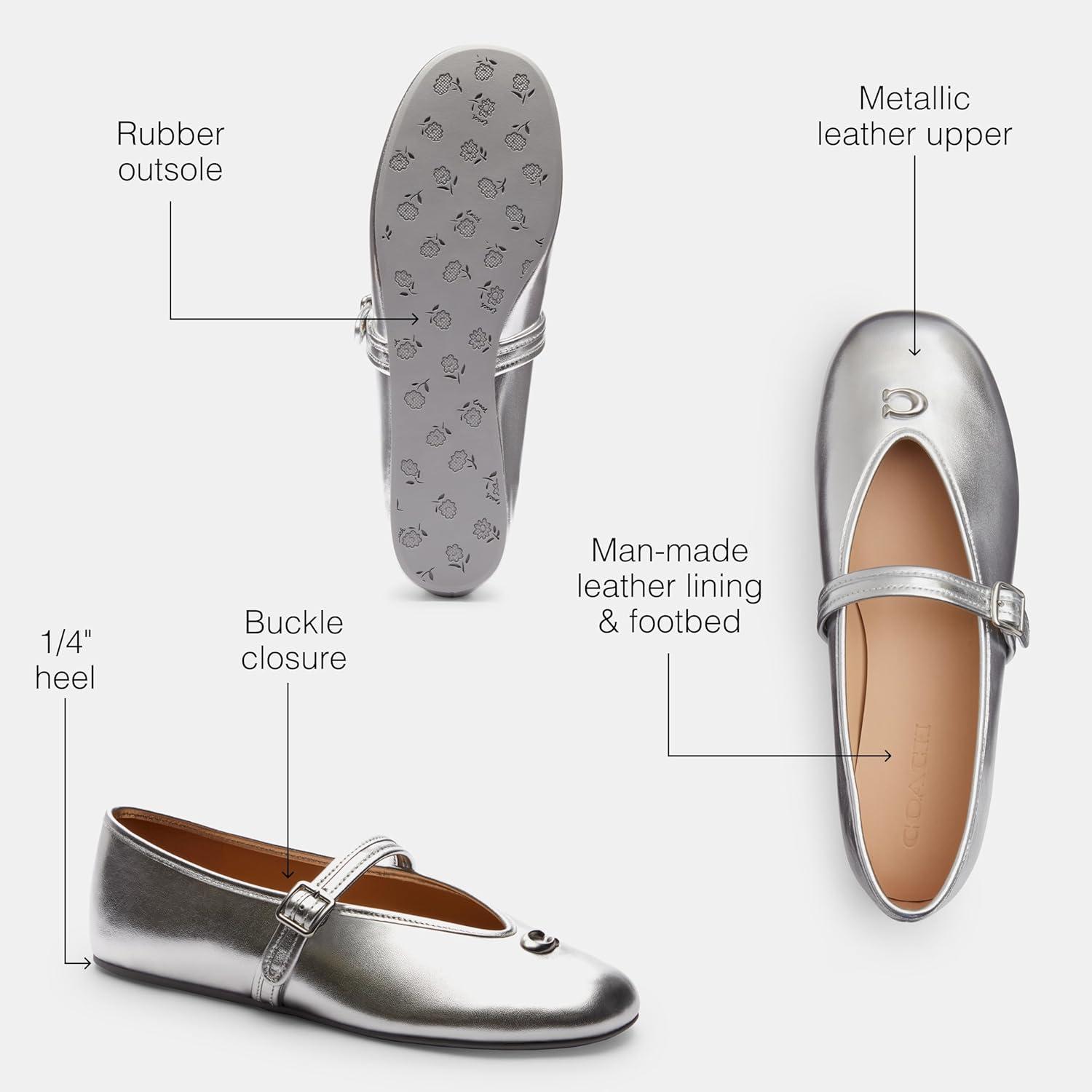image:imageCOACH Womens Sculpted C Soft Mary Jane FlatsSilver