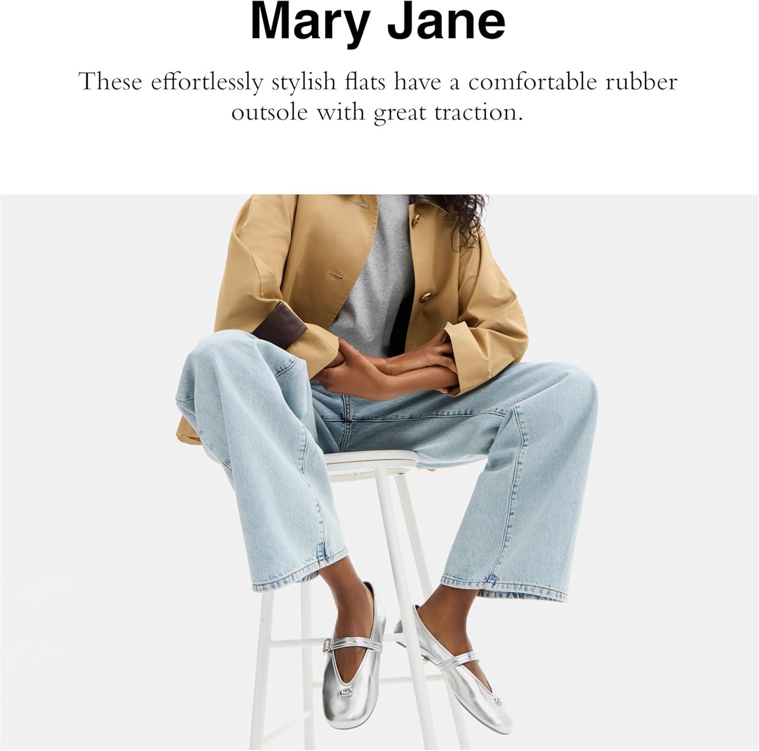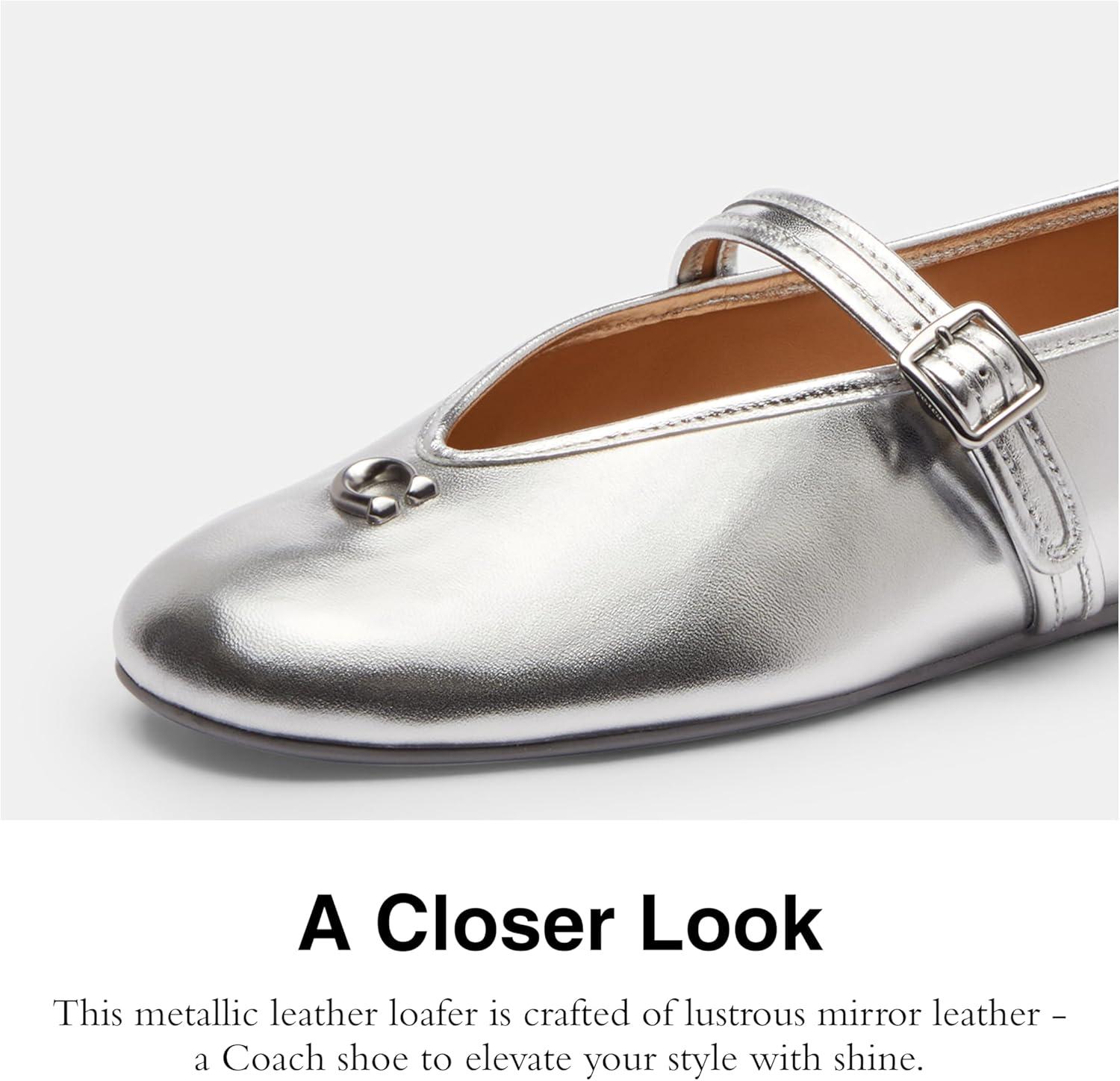 COACH Women’s Sculpted C Soft Mary Jane Flats(Silver)