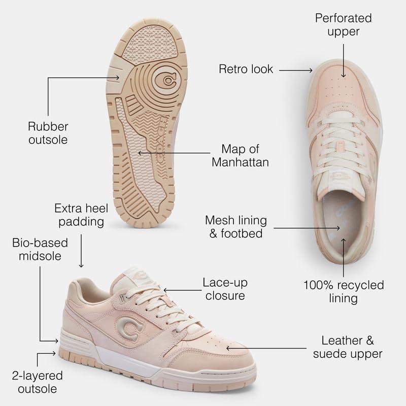 Our Coach SoHo Sneaker is inspired by the courageous free spirit of our hometown New York City and built to keep pace with life on the go. Crafted of smooth leather, it features a midsole that contains at least 28% bio-based content, created through a process that uses renewable sources in place of fossil-based. The comfortable style is finished with a grooved rubber outsole detailed with a map of Manhattan.