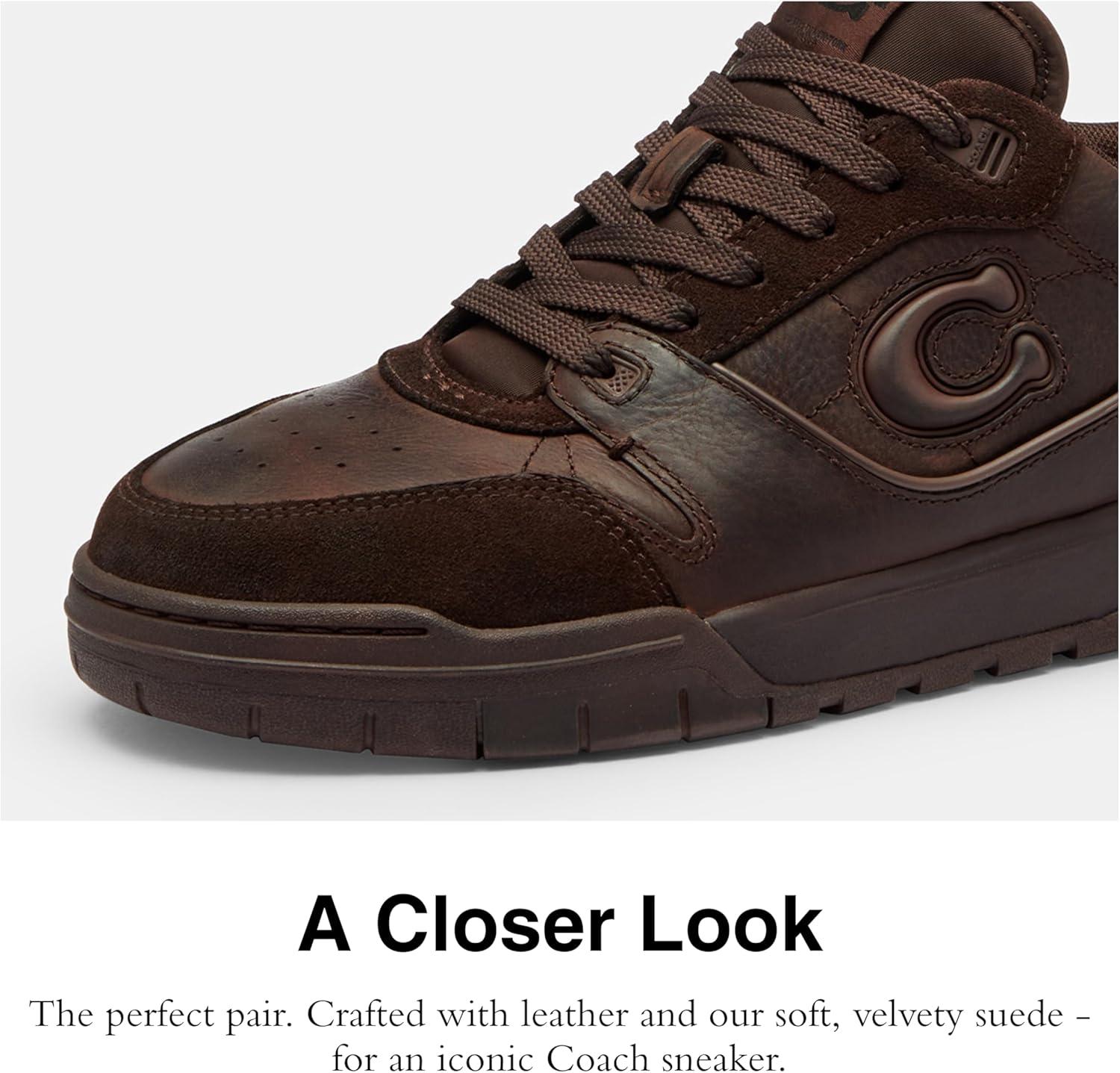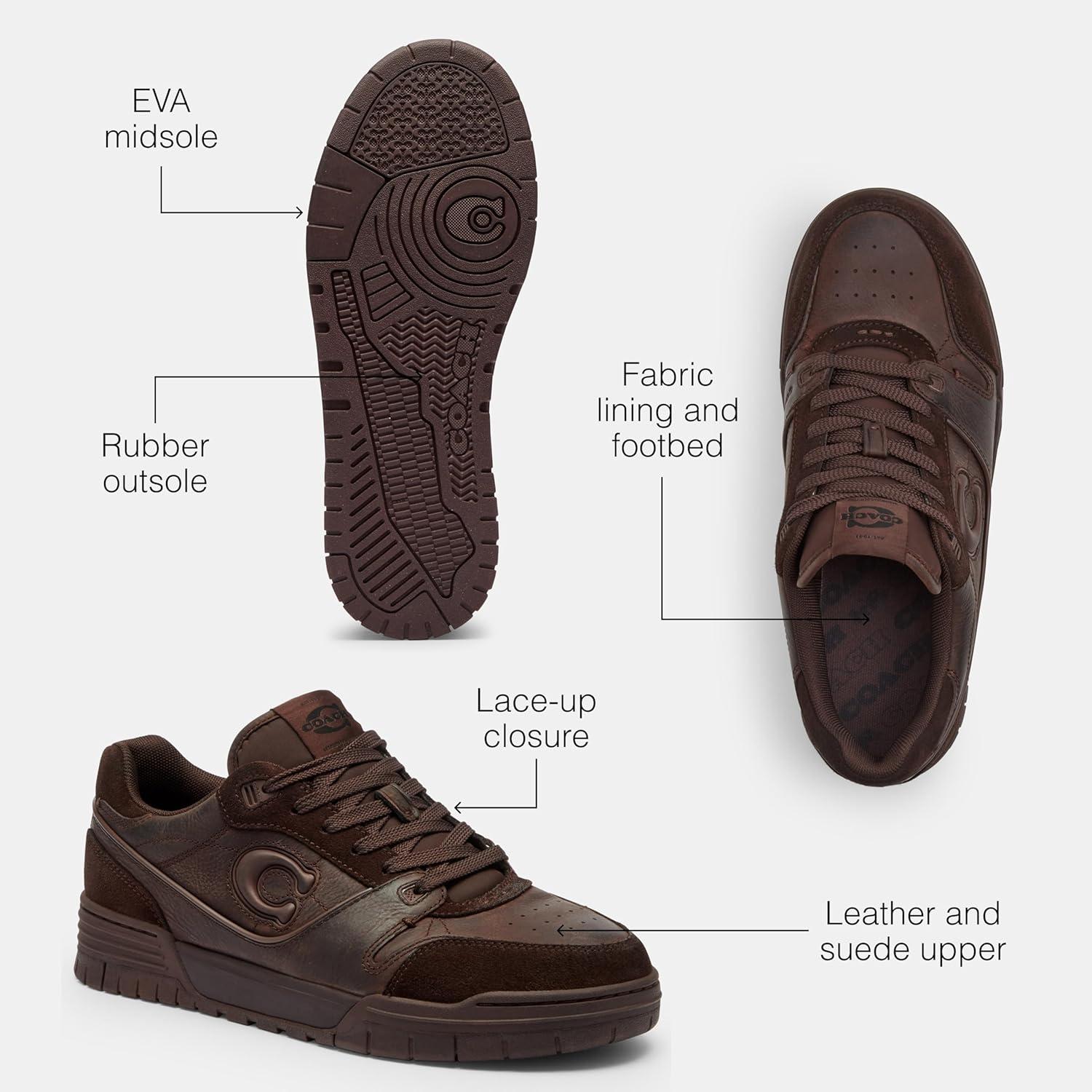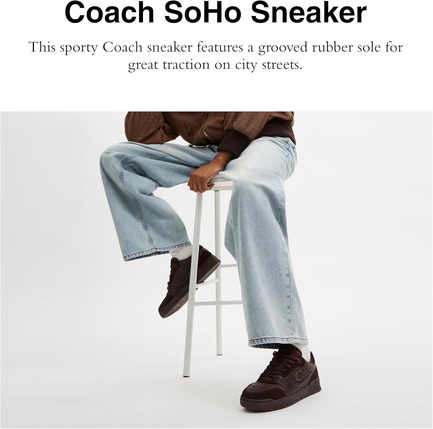 Our Coach Soho Sneaker is inspired by the courageous free spirit of our hometown New York City and built to keep pace with life on the go. These comfortable men's sneakers are finished with a grooved rubber outsole detailed with a map of Manhattan. Leather and suede upper, fabric lining and footbed, EVA midsole, rubber outsole, lace-up closure