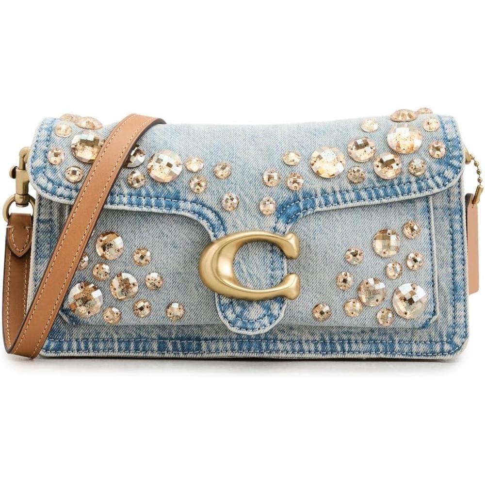 A modern take on an archival 1970s Coach design, our structured Tabby shoulder bag is crafted of natural grain leather and finished with our Signature brass hardware for an iconic touch. This roomy bag features a leather lining, outside zip pocket, detachable short strap with 9 1/2″ drop and detachable long strap with 21 1/2″ drop for shoulder or crossbody wear. 10″ (L) x 5 1/2″ (H) x 2 3/4″ (W)