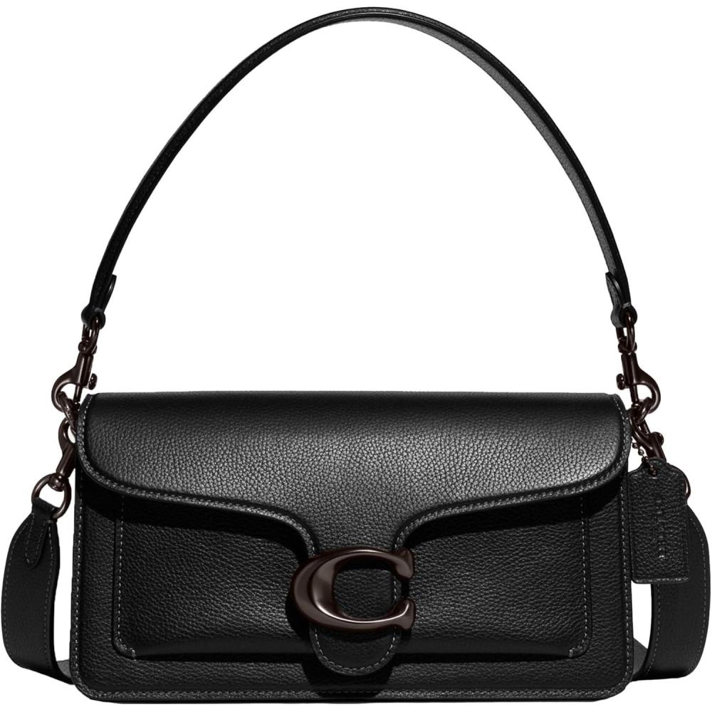 A modern take on an archival 1970s Coach design, our structured Tabby shoulder bag is crafted of natural grain leather and finished with our Signature brass hardware for an iconic touch. This roomy bag features a leather lining, outside zip pocket, detachable short strap with 9 1/2″ drop and detachable long strap with 21 1/2″ drop for shoulder or crossbody wear. 10″ (L) x 5 1/2″ (H) x 2 3/4″ (W)