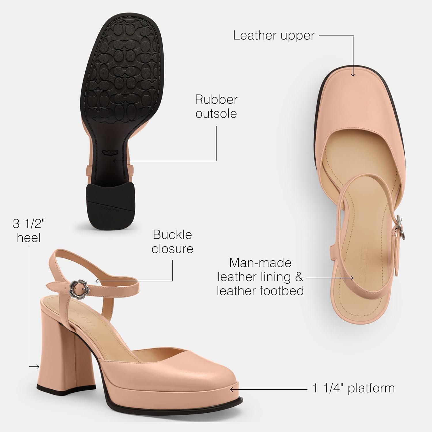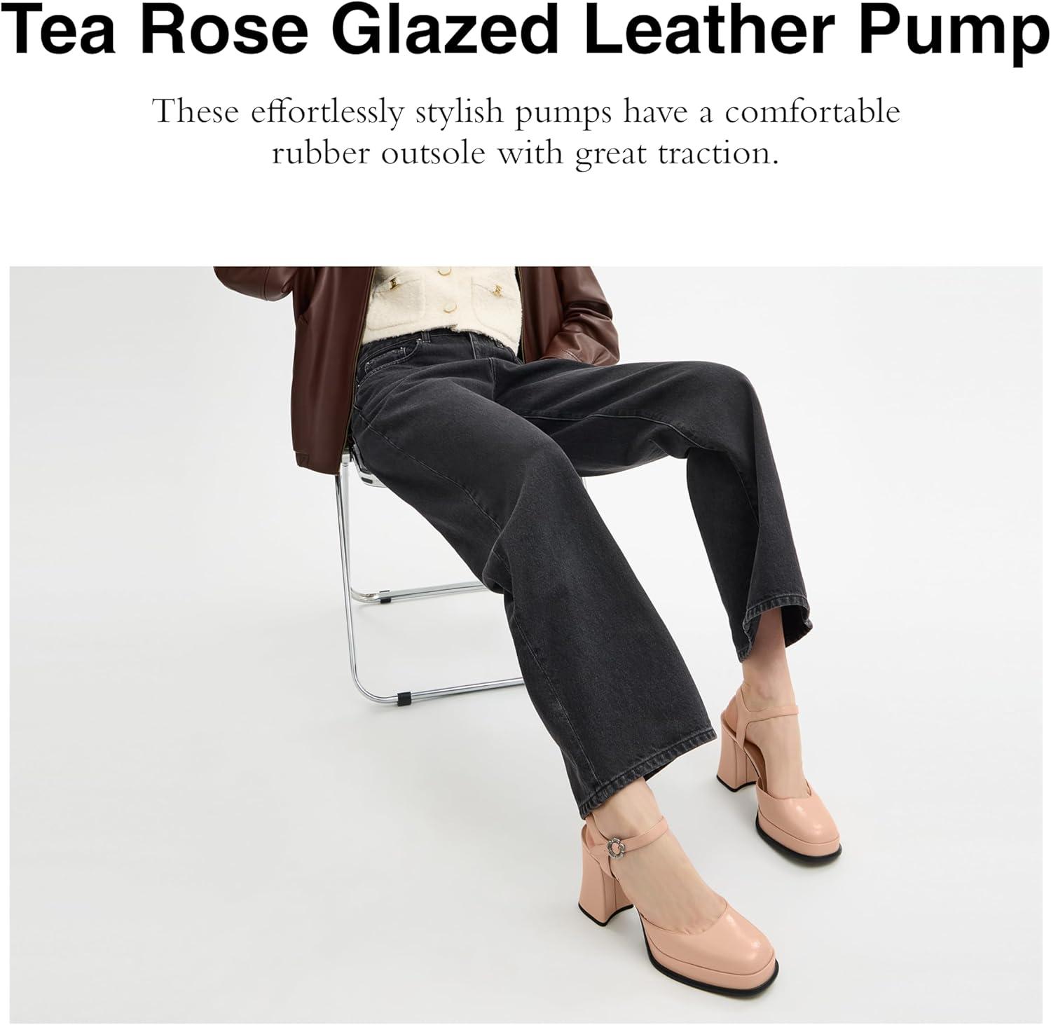 Take elegance up a notch with the Tea Rose Glazed Leather Pump, featuring a tea rose accent and our Signature C hardware for a heritage touch. Leather upper, man-made leather lining, leather footbed, rubber outsole, buckle closure, 3 1/2″ heel, 1 1/4″ platform