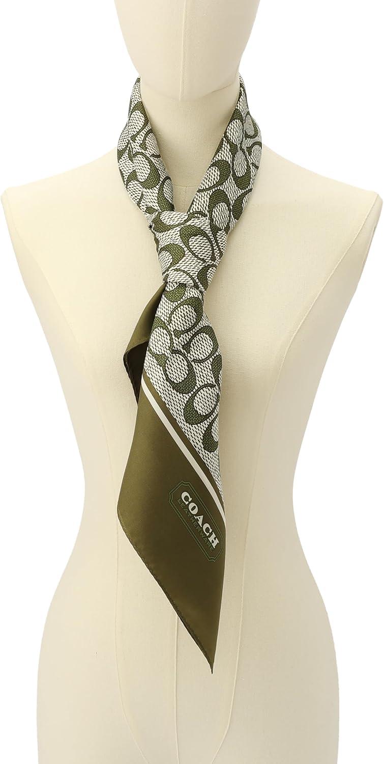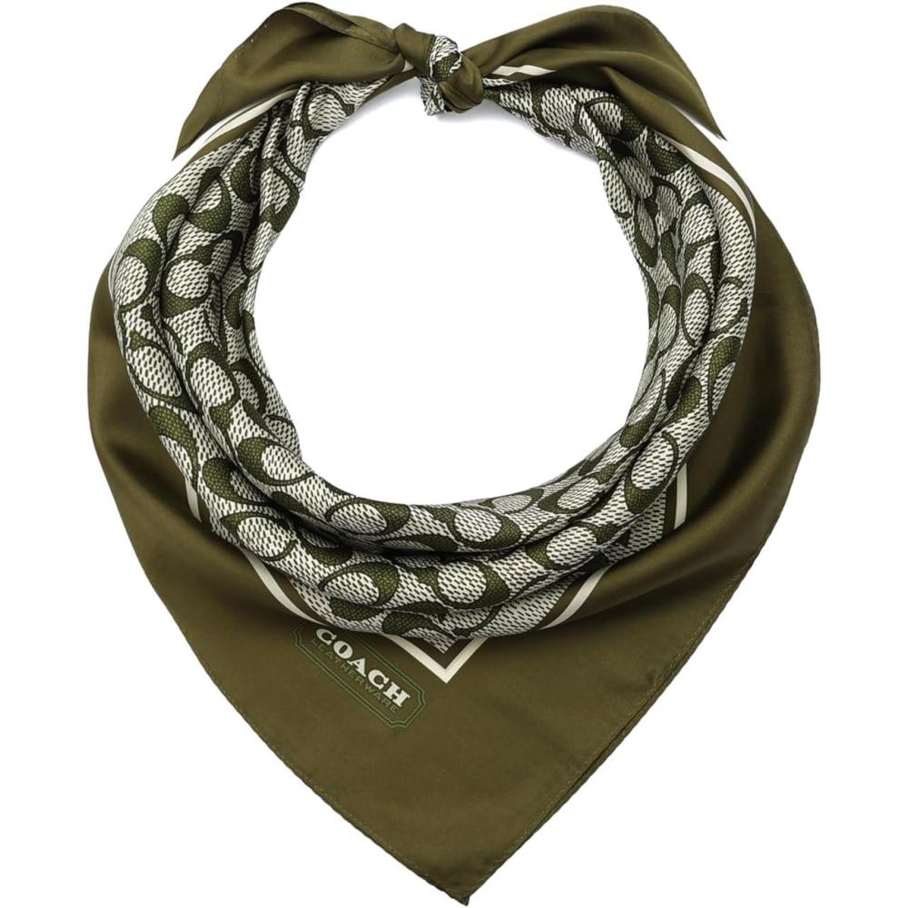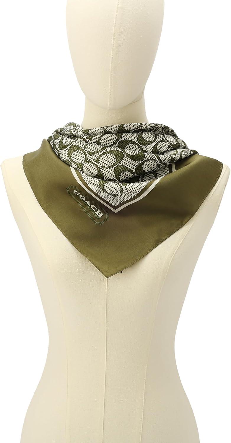 COACH womens Textured Signature C Printed Silk Square(Olive)