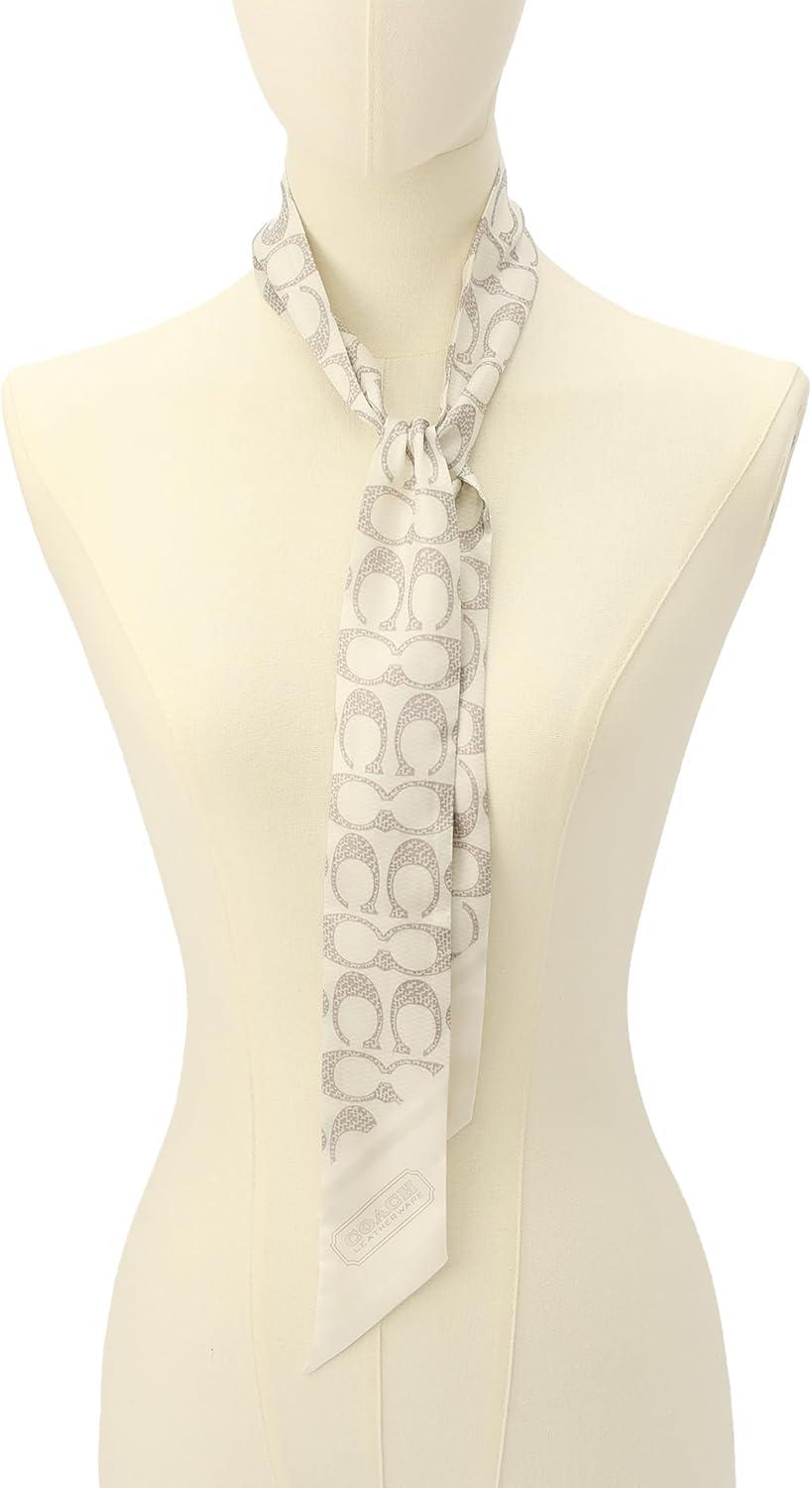 This lightweight silk skinny scarf is detailed with the signature Coach C motif. It features the Coach Badge and is finished with a solid edges.