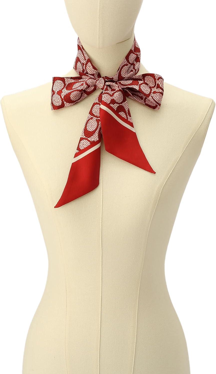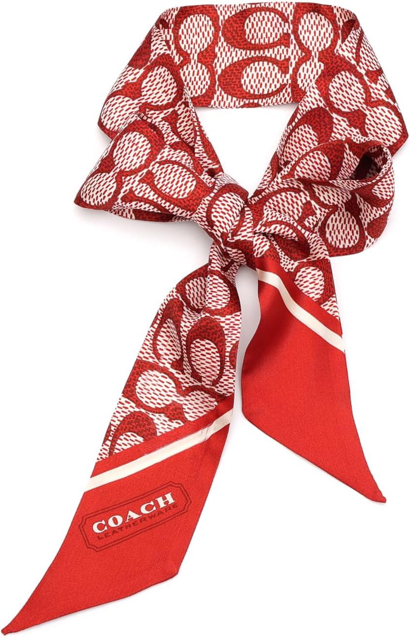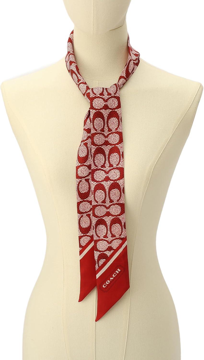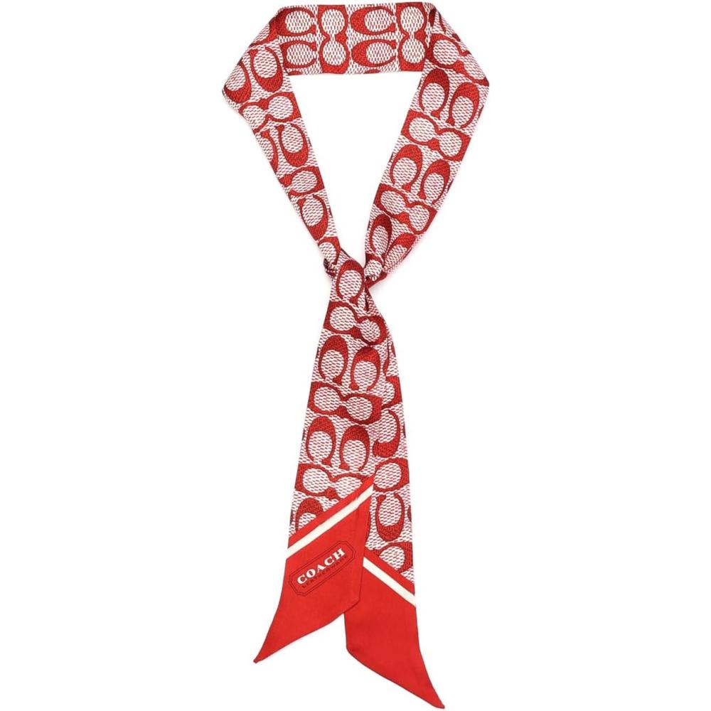 COACH womens Textured Signature C Printed Skinny Scarf(Ruby)