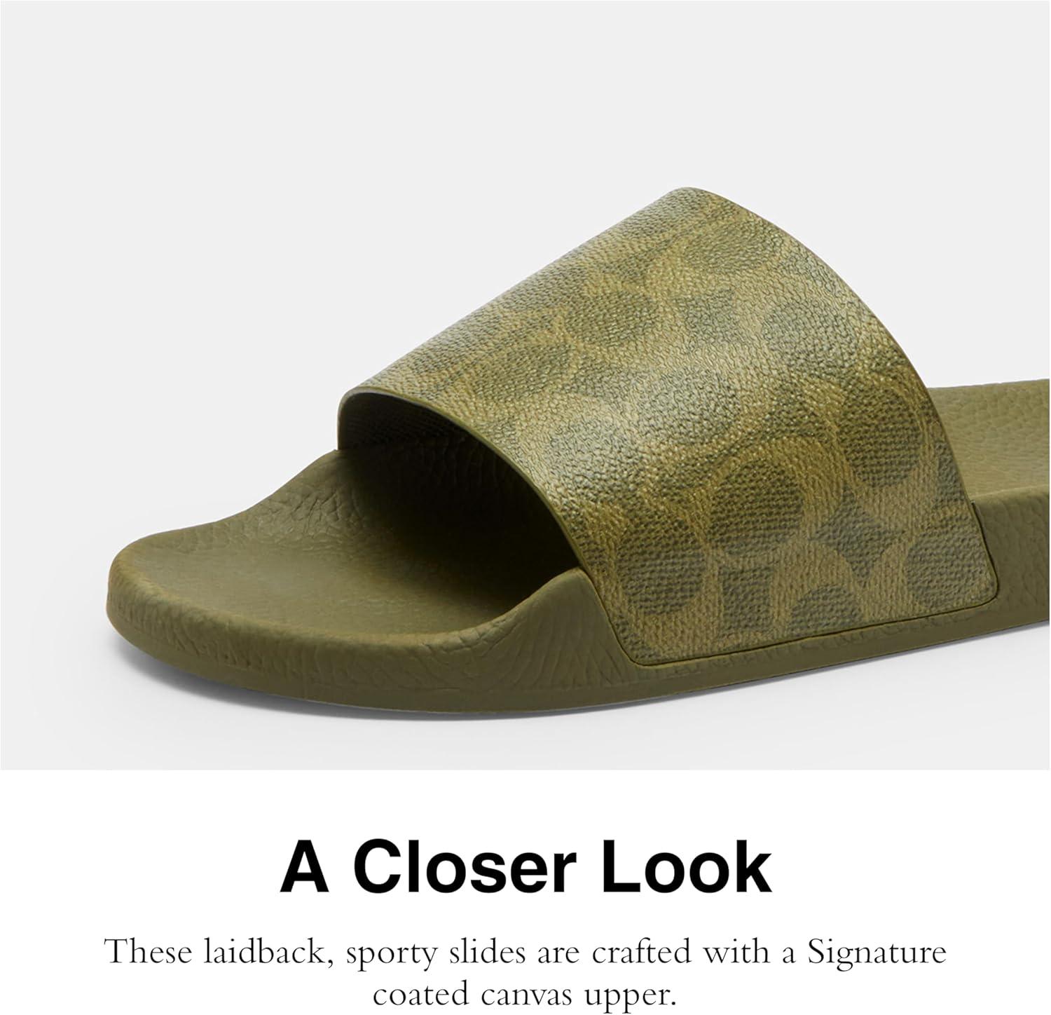 COACH womens Udele Sport Slide in Signature Canvas(Olive)
