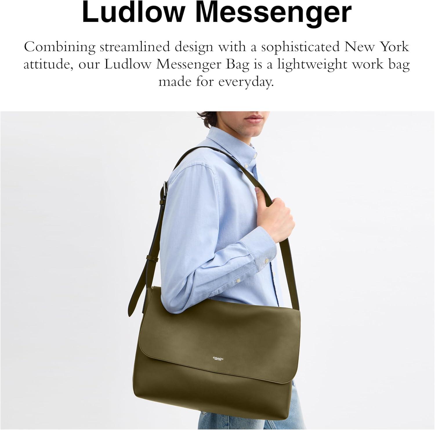 Combining streamlined design with a sophisticated New York attitude, our Ludlow Messenger Bag is a lightweight work bag made for everyday. Natural grain leather and vegetable-tanned leather, inside snap pocket, snap closure. Adjustable strap with 17 1/4″ drop. Fits a 16″ laptop. 13″ (L) x 9 3/4″ (H) x 5 1/2″ (W)