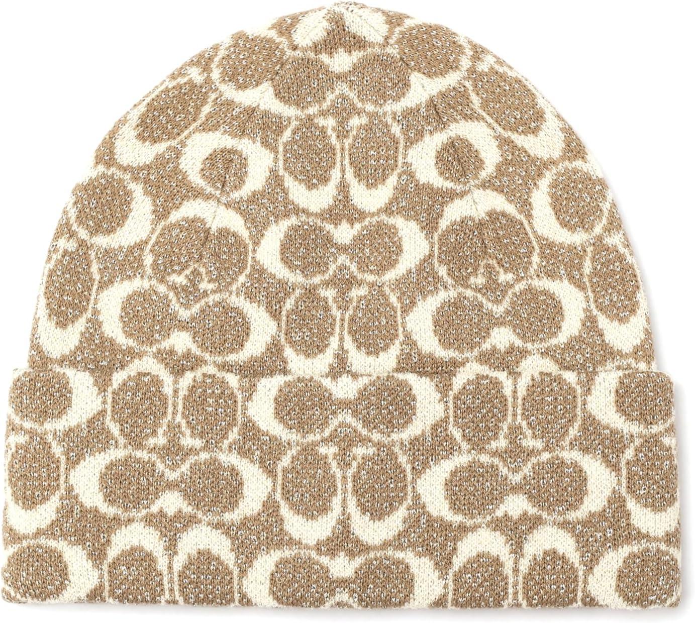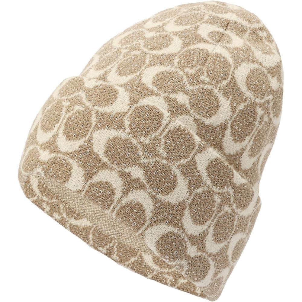 Metallic threads add festive shine to this Coach Signature merino wool-blend beanie. It’s finished with a soft rib-knit brim.