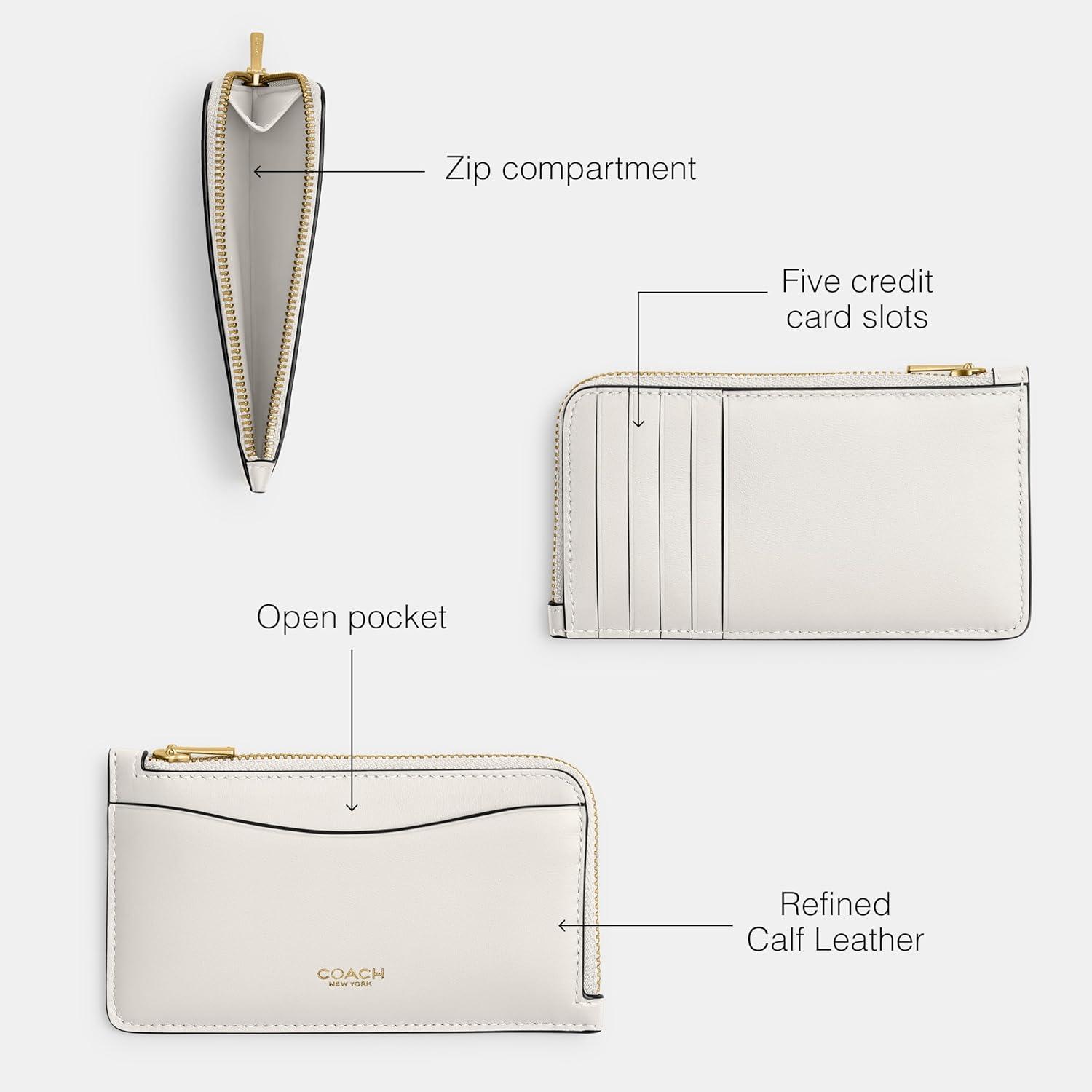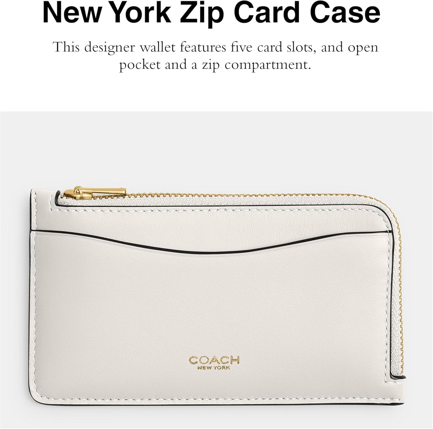 This sophisticated New York Zip Card Case is crafted of refined leather and finished with a zip pocket to keep items secure. This designer wallet for women features 5 card slots an open pocket and a zip compartment.