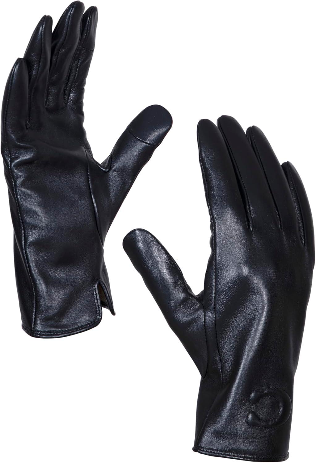 These buttery soft leather gloves keep you warm and well connected: a special coating on the leather makes it compatible with your touch-screen devices. These gloves are lined with wool.